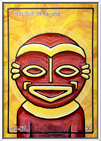 Liée à mon histoire familiale, cette série s'inspire de masque typiques d'Angola. Avant ma naissance, mon grand-père qui était géologue est décédé de manière foudroyante lors d’un déplacement en Angola. Il ramenait parfois de son vivant des masques faits à la main typiques de là-bas, moulés en terre cuite avec de l’émail brillant. Ils sont devenus des mementos pour notre famille.